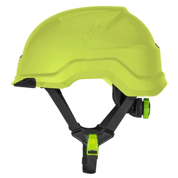 The RADIX Non-Vented Safety Helmet is comfortable thanks to its four-point LUX Suspension system, which guarantees the helmet fits securely on the head. The magnetic quick-lock, adjustable chinstrap makes it ideal for working at height and on the ground. The unventilated outer shell protects against electrical hazards, molten metal splash, and flames. With its potential for integrating an ARCLIGHT headlamp, LIFT hearing protection, and multiple accessories, it is an entirely modular helmet, thus meeting the specific needs of multiple industries.