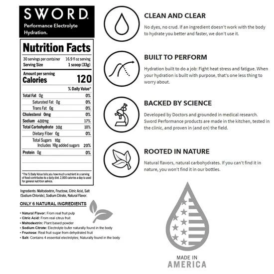 SWORD Performance Electrolyte Hydration Powder Mix Makes 5 gal Lemonade 01-01-30-06-LM
